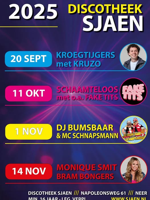 Het programma de komende 2 maanden in Discotheek Sjaen.