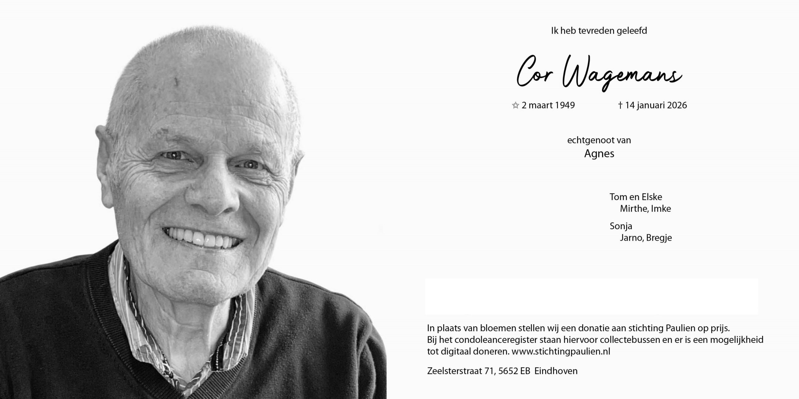 Wij wensen de familie veel sterkte.
