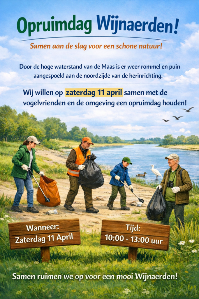 Om dit gebied weer schoon en netjes te maken, organiseren wij op zaterdag 11 april samen met de vogelvrienden en de omgeving een opruimdag.