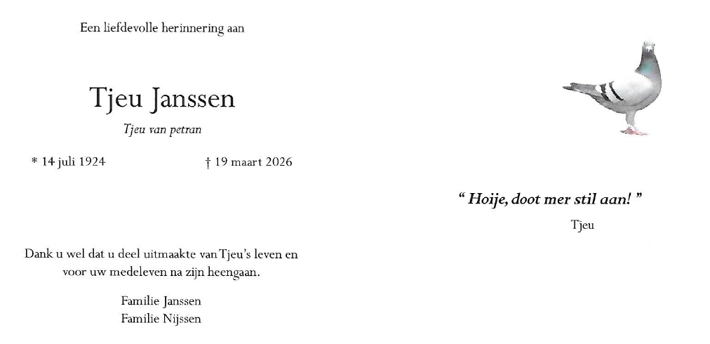 bij de uitvaart van Tjeu Janssen (van Petran)