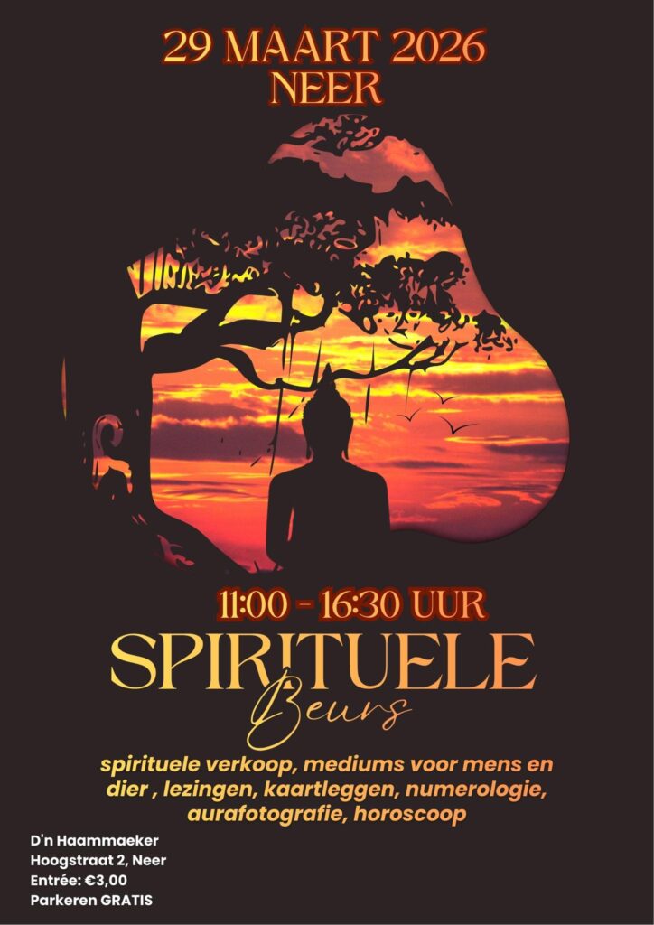 Spirituele Beurs – 2e Editie Op zondag 29 maart is het zover: de 2e editie van onze spirituele beurs! Zet het alvast in je agenda Vanaf 11:00 uur staat D’n Haammaeker volledig in het teken van spiritualiteit. Je kunt genieten van spirituele verkoop, mediums, lezingen, kaartleggen, aurafotografie, horoscopen en nog véél meer Entree: €3,-
