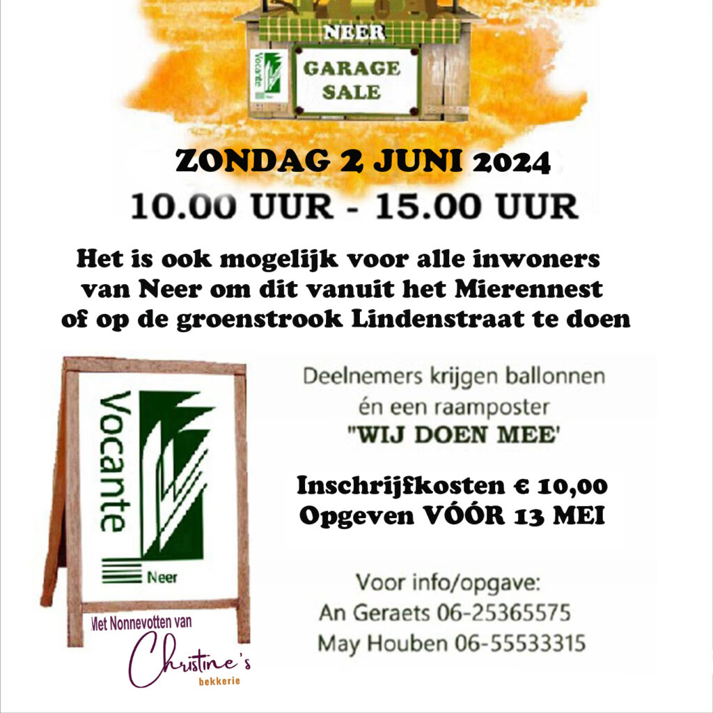 Opgave/aanmelden voor de GARAGESALE is nog mogelijk!