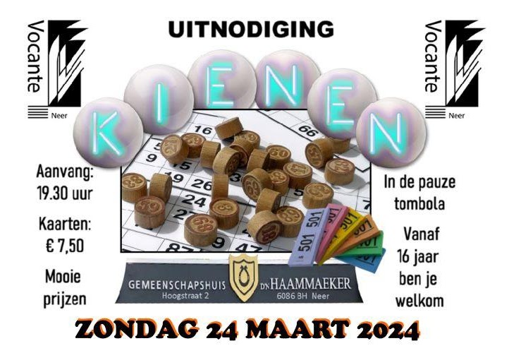 Aanvang: 19.30 uur Kaarten €7,50 mooie prijzen in de pauze tombola Vanaf 16 jaar ben je welkom