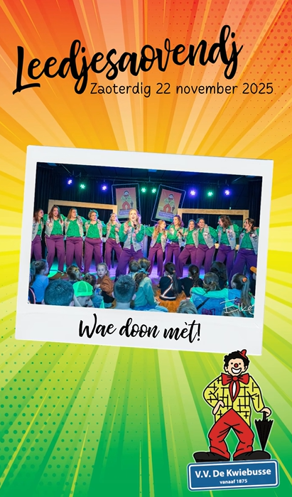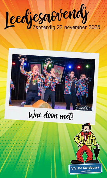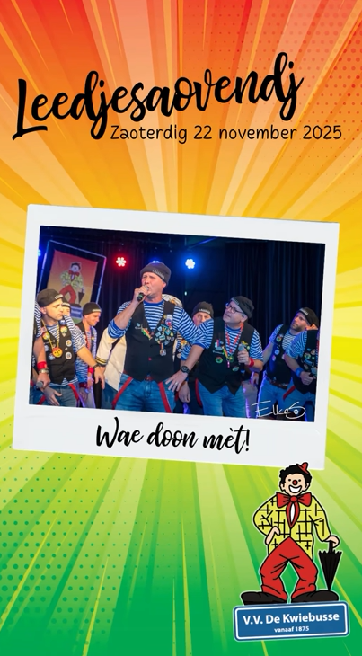 En wie die klinke, det gaon wae zaoterdig 22 november 2025 belaeve.