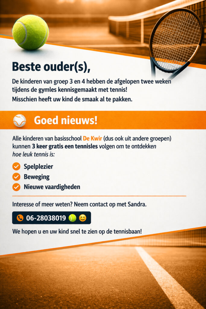 een GRATIS TENNISLES volgen!