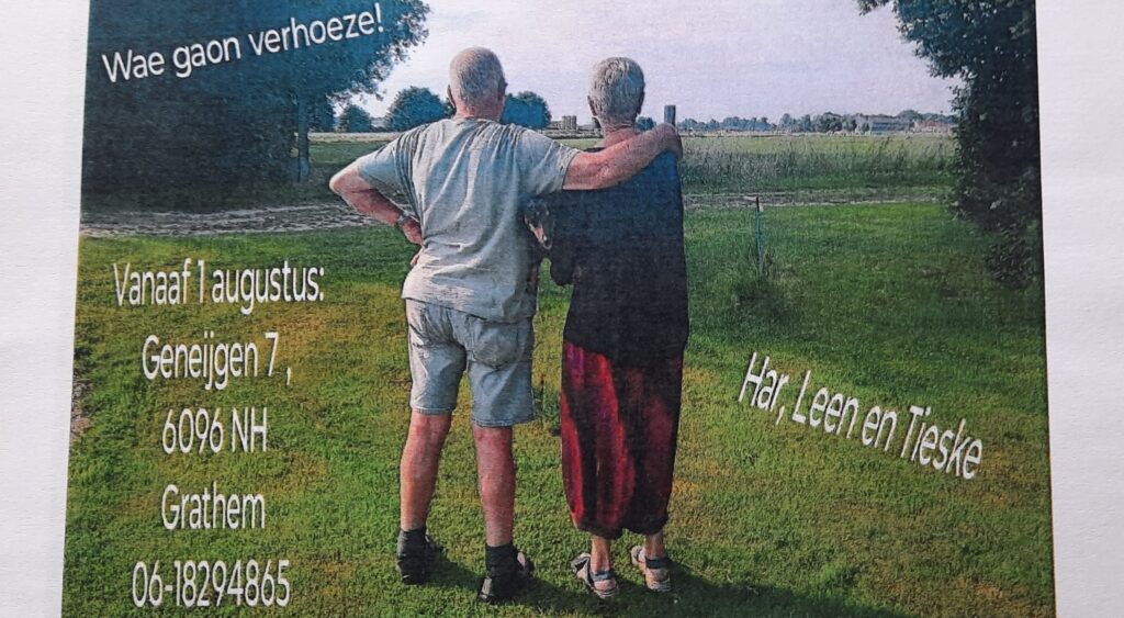 Leen en Har gaan met ingang van 1 augustus verhuizen naar Grathem.