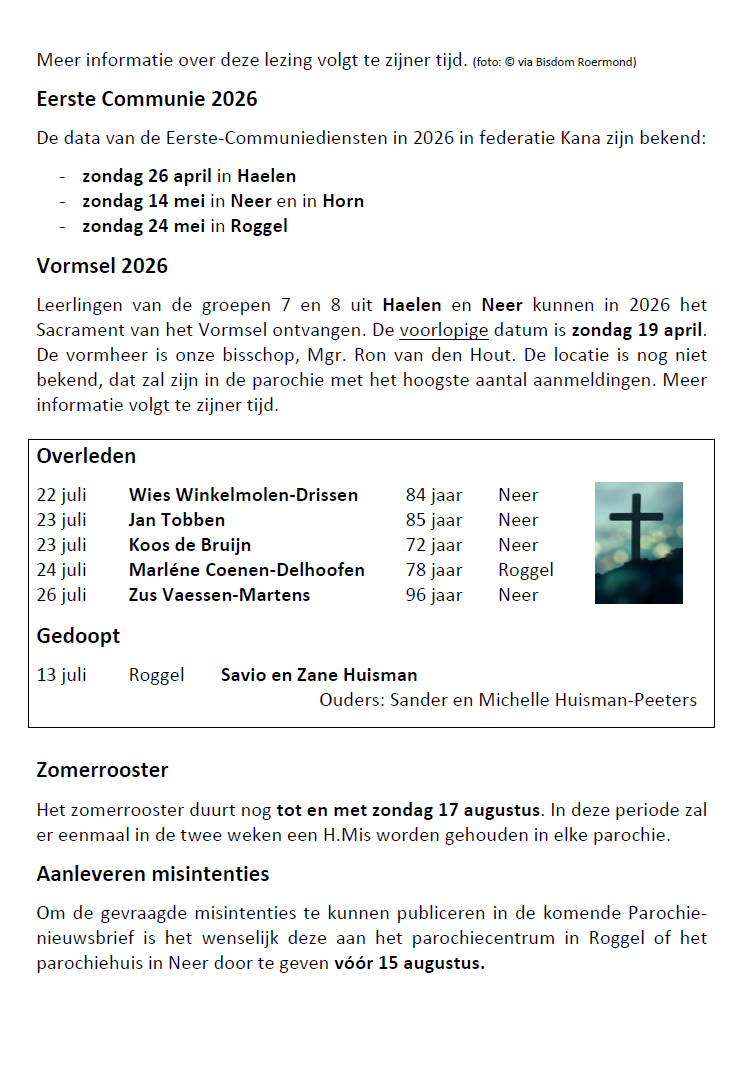PAROCHIE-NIEUWSBRIEF